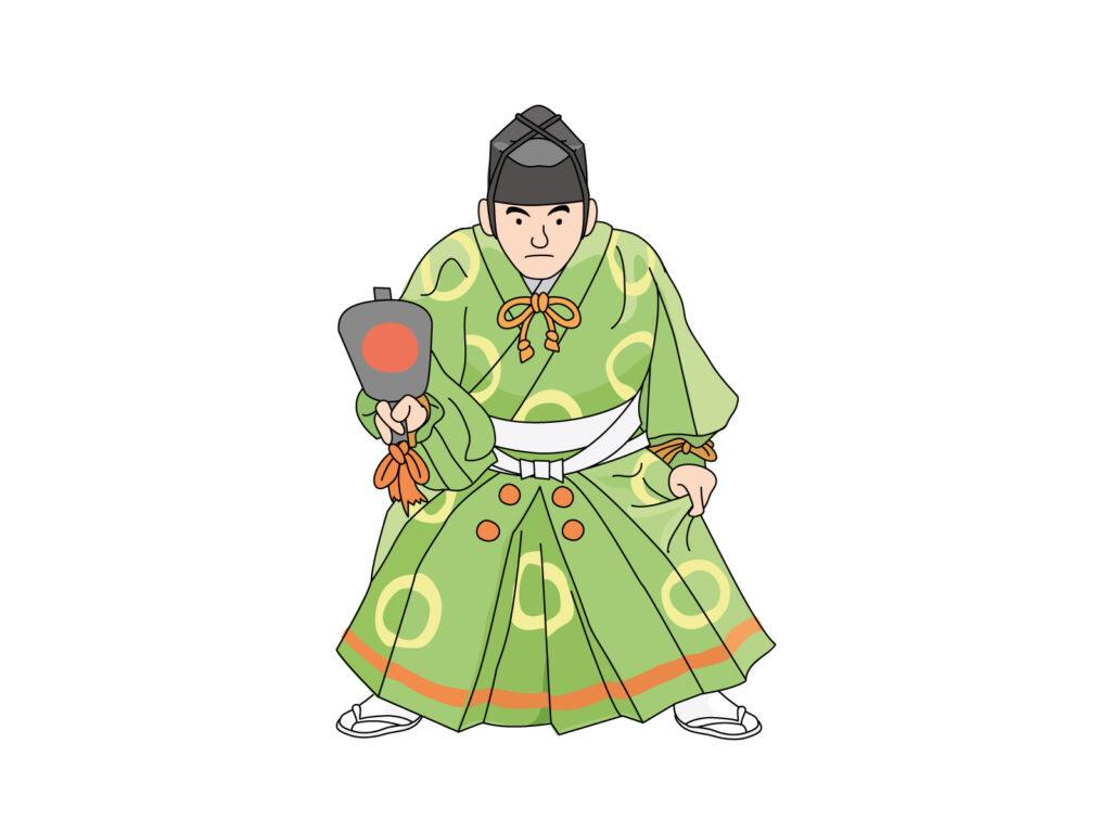 行司は軍配を持って勝敗を決し、腰には短刀を差しており